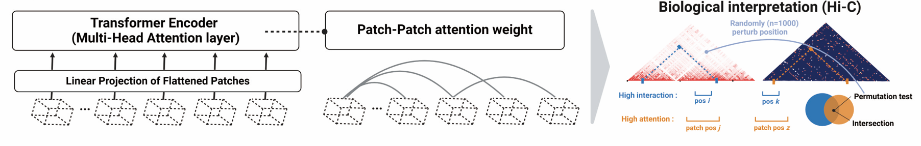 DECA通过将染色体分割为较小的区域(称为patch),并利用多头注意力机制辨识不同patch之间的相互关系。这种方法有效地降低了数据集的维度,同时能够捕捉到与细胞类型特异性高度相关的patch交互(图2)。在DECA的训练阶段,所获得的patch-attention权重帮助从冗余数据中提取关键的染色质共可及性模式。通过基于染色质的层级结构和高分辨率的Hi-C数据,验证了这些经过过滤的注意力权重在生物学上的可解释性(图2)。