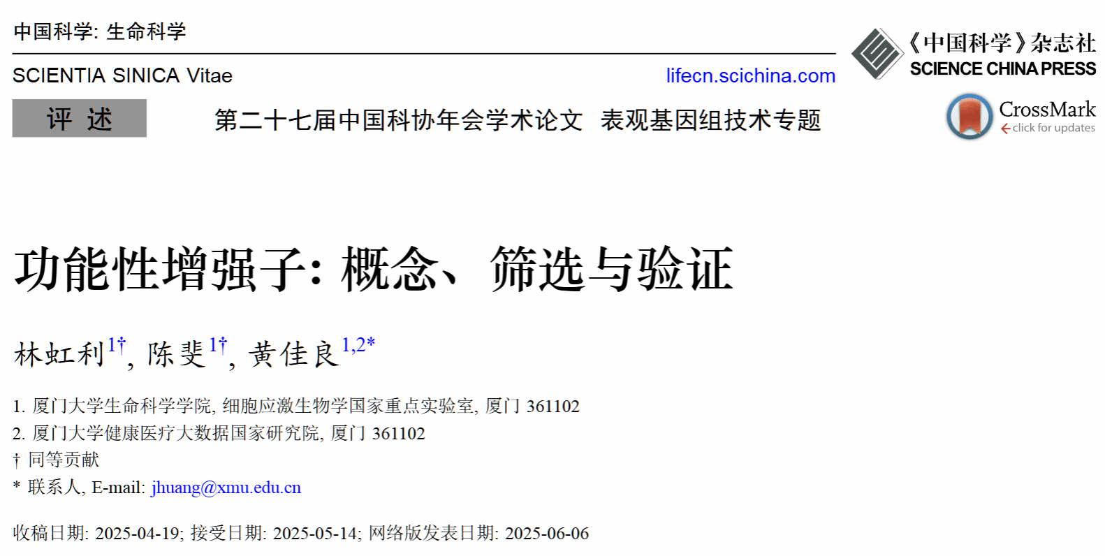 近日,厦门大学生命科学学院黄佳良教授团队在《中国科学:生命科学》发表了题为《功能性增强子:概念、筛选与验证》综述论文,系统阐述了功能性增强子研究的最新进展。